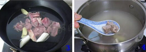 3.牛腩净后,放入锅内,加入没过牛肉的水,放入姜片,葱段,煮开3分钟焯去血水。![传统美食——罗宋汤的做法[有图]的做法步骤1](/d/swfup/20140627/1403882709664.jpg)