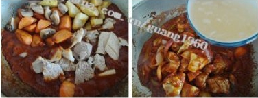 8.加入炖牛肉的清汤,加盖儿煮10分钟,直到汤汁收浓稠即可。