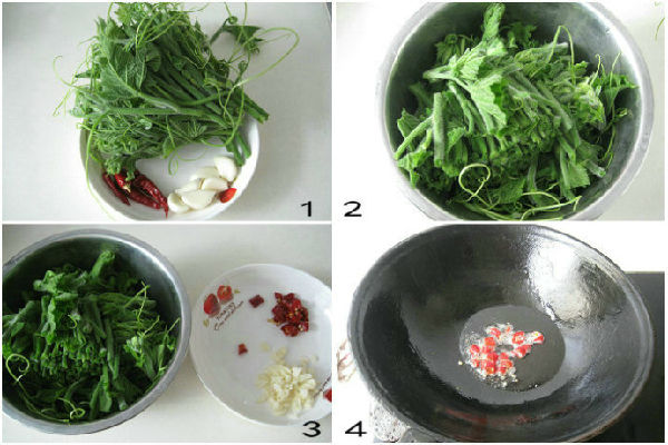 南瓜藤,蒜蓉,姜丝,干辣椒(可以根据自已的情况而定可不用) ,盐。