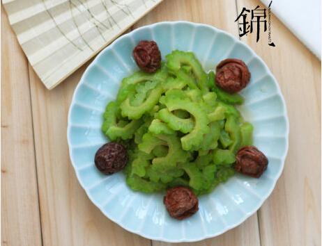 切好的苦瓜入滚水中焯1分钟捞出,放在有冰块的冰水内镇凉。冰镇后的苦瓜捞出沥水,倒入放凉的话梅汁即可食用,如喜欢更甜的味道可放入冰箱冷藏2小时以上。
