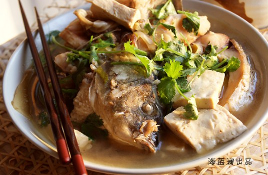 将鱼小心盛出,然后把汤汁淋在鱼身上。