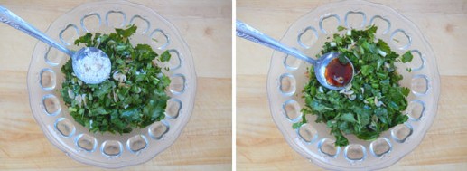 1.清洗各种材料,尤其是香菜的根部要择干净,老叶子也去掉。