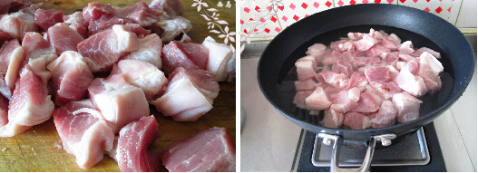 4.锅中注入水,加入肉块烧开,将肉焯水后沥干水分。