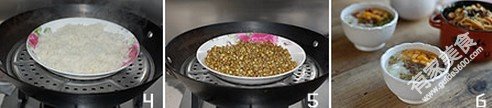 3.糯米和绿豆分别入锅隔水蒸熟,